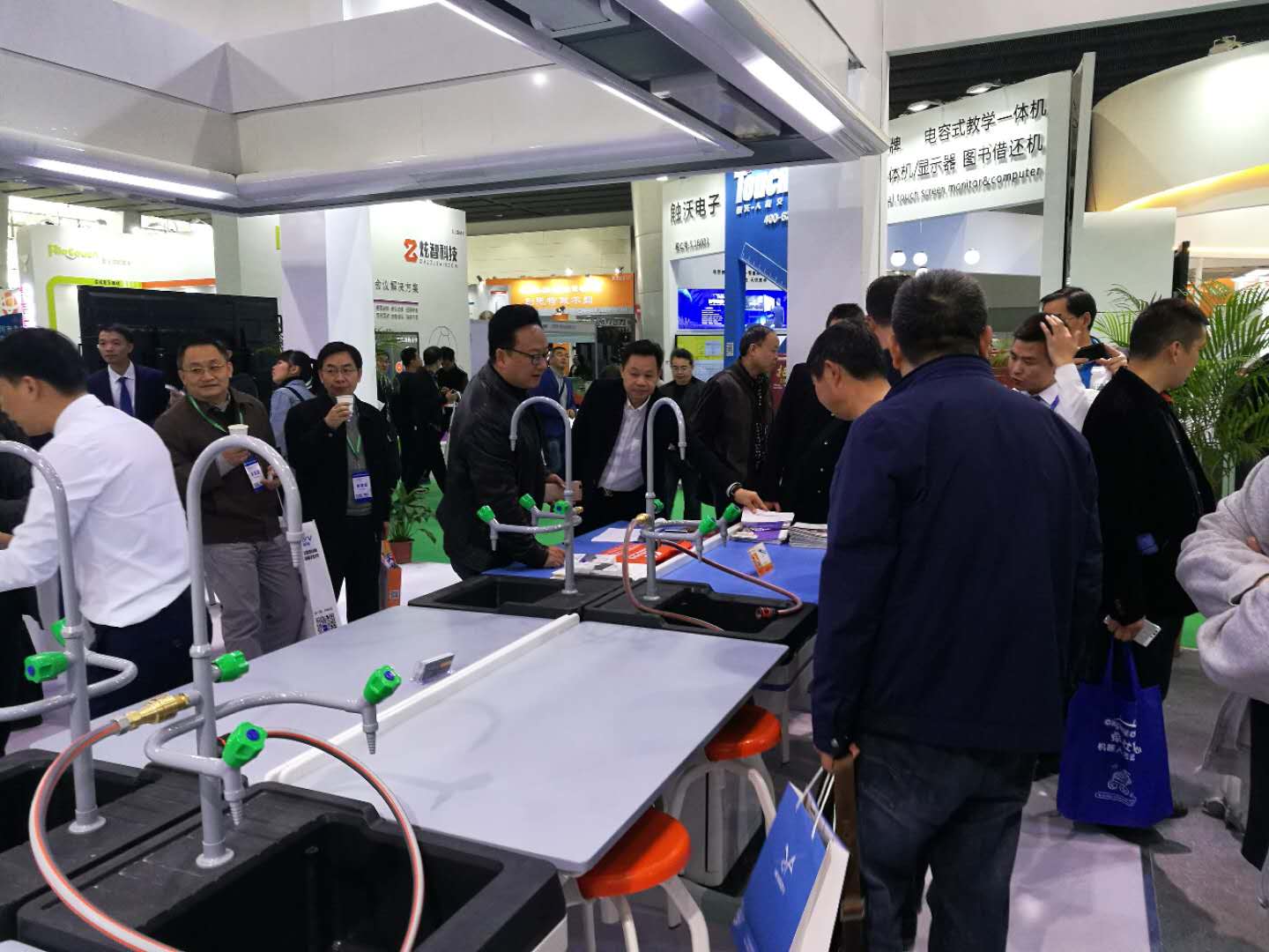 3天里,新科的展位迎來送往了無數客戶,我們對工藝精益求精的專注,用我們的誠信、創新、品質、服務對客戶全面盡責,和長期的信譽累積使新科成為展館焦點之一。絡繹不絕的參觀者里不乏教育局和各學校領導。非常感謝各位領導在百忙之中前來我們展位指導參觀。
