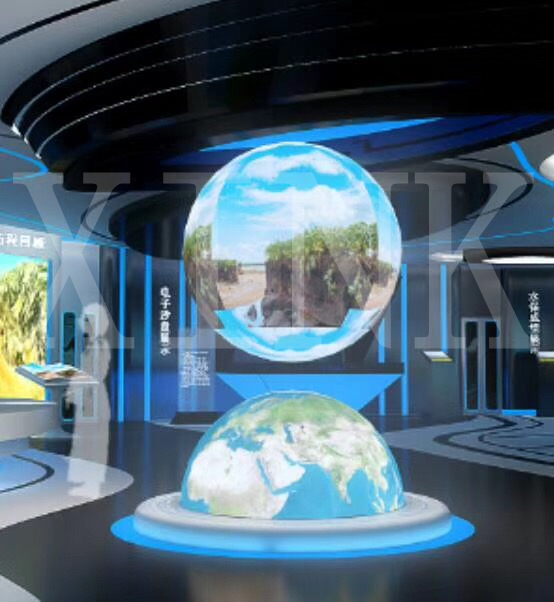 數(shù)字地理模型是現(xiàn)在最流行的天文地理展示設(shè)備,它利用鍍膜玻璃對(duì)光的折射和反射原理, 把虛像投影到成像空間,通過(guò)精調(diào)三個(gè)面的成像融合,形成“實(shí)像”,給人一種“物在其中”的 真實(shí)感覺(jué)。可分別演示天文、地理等三維內(nèi)容。